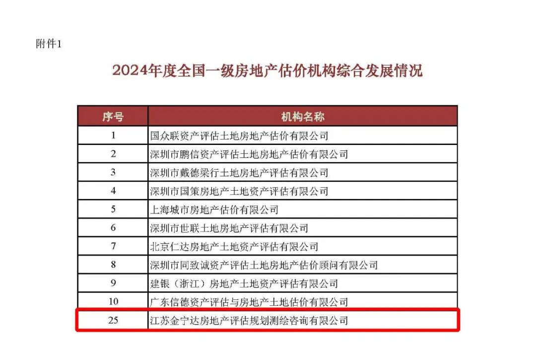 6月17日,中国房地产估价师与房地产经纪人学会(以下简称“中房学”)公布了2024年度全国1132家一级房地产估价机构排名,我公司综合发展情况排名全国第二十五,其中营业收入、房地产估价业务收入、注册房地产估价师人数等单项排名均名列前茅。
